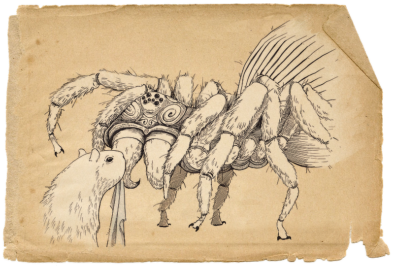 An ancient and extraordinarily large arachnid, Kariguu has served the village of Pawville as a seamstress to its residents and armorer to its guard for as long as anyone can remember.Her residency as a predator among a largely herbivore population is a testament, presumably, to both her talents and her conduct.She has taken a particular interest in Capy and the blue blanket he carries.